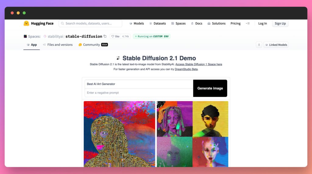 Through Huggingface.co, the Stable Diffusion 2 model is available via a free to use demo interface. This interface is simple, yet it gets the job done. Against every text prompt, it returns 4 variations for the provided instructions.