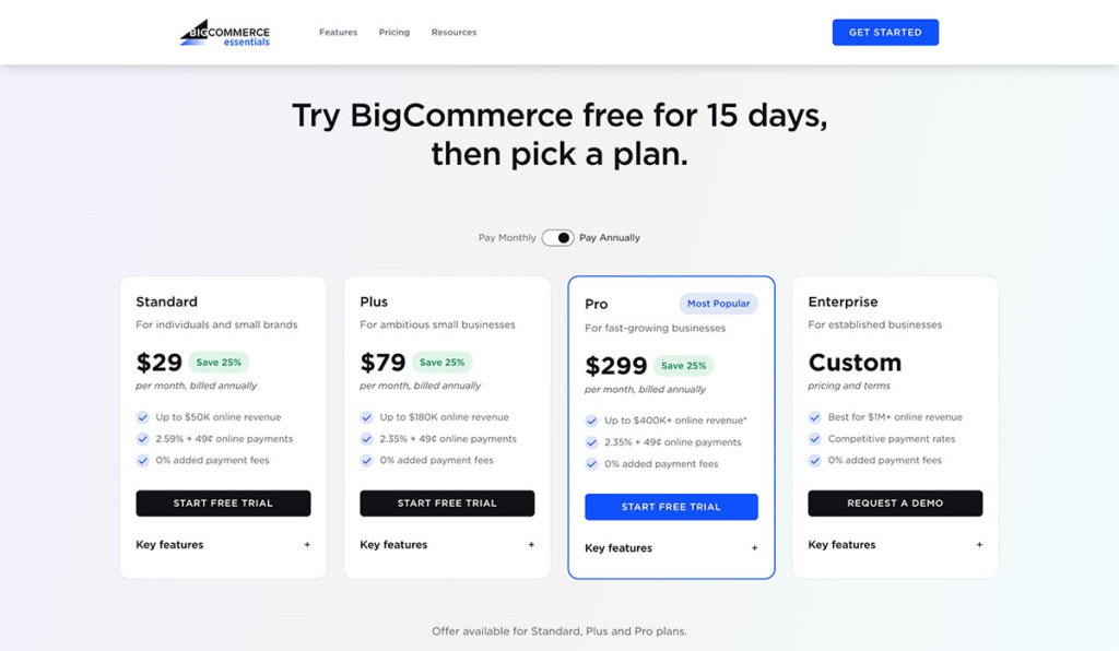 Here’s what BigCommerce pricing looks like at a glance, as of March 2025: