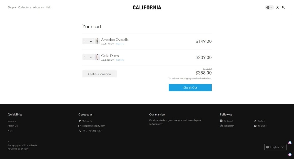 Cart page example