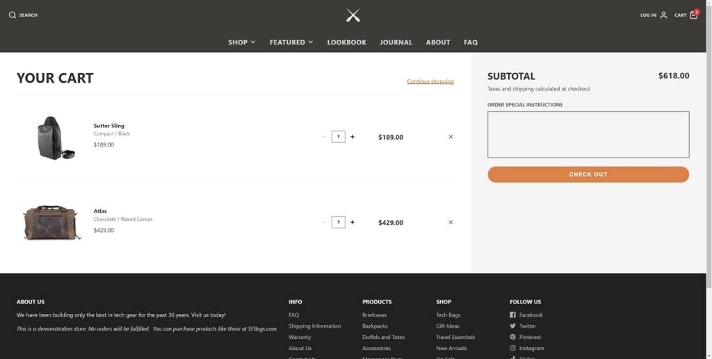 Cart page example