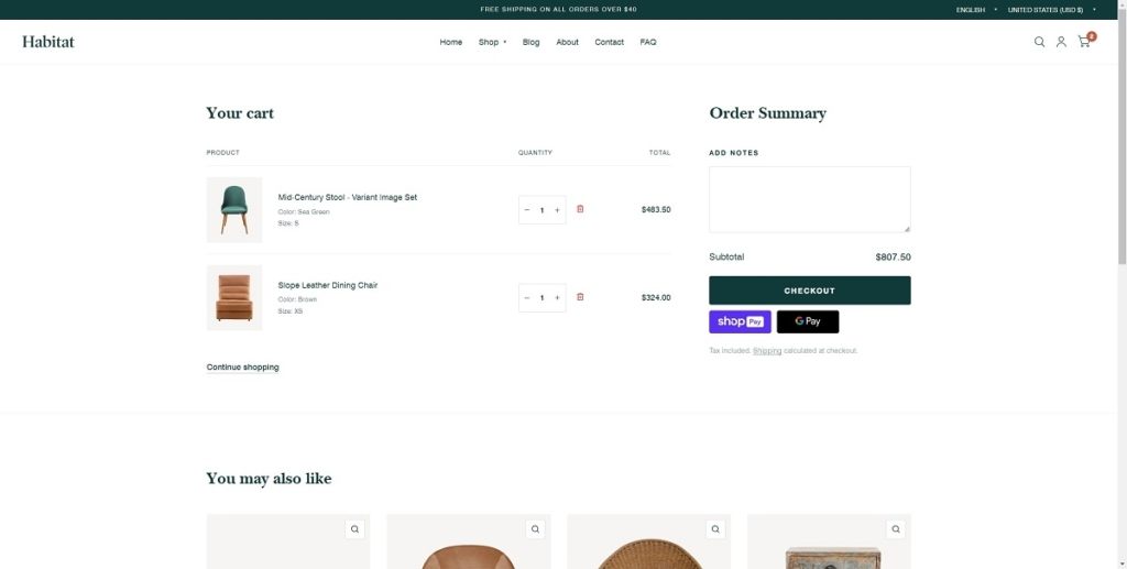 Shop page example