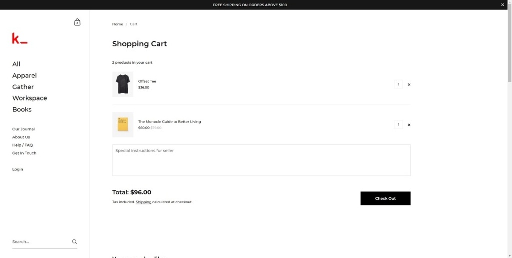 Cart page example
