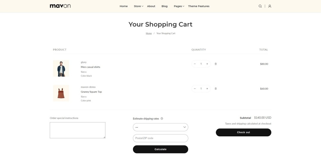 Cart page example