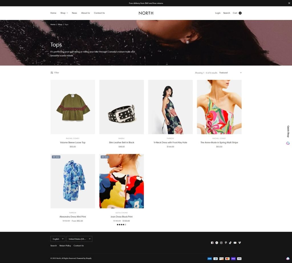 North is a Premium Shopify theme that is ideal for brands with both small and large inventories.