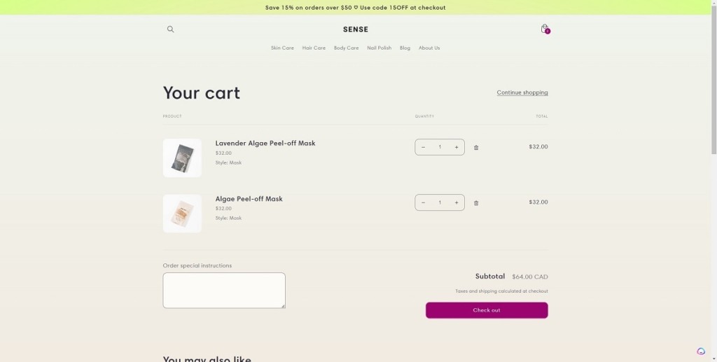 Cart page example