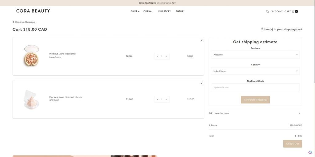 Cart page example